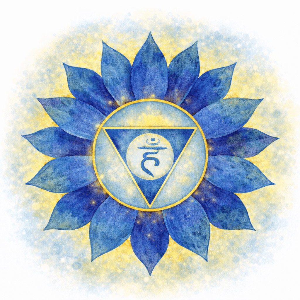 The Throat Chakra is the home’s voice — the hallway where messages move from room to room. When open, you speak clearly, honestly, without fear of judgment. When blocked, words sit heavy in the throat and you may stay quiet to avoid conflict.